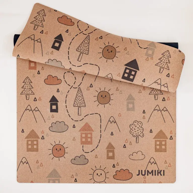Mata JUMIKI WIOSKA W GÓRACH XXL to duża, ekologiczna mata do ćwiczeń dla dzieci wykonana z naturalnego korka i kauczuku. Zapewnia stabilność, bezpieczeństwo i komfort podczas zabawy, jogi i ćwiczeń ogólnorozwojowych. Kolorowy wzór górskiej wioski pobudza wyobraźnię i zachęca do ruchu.
