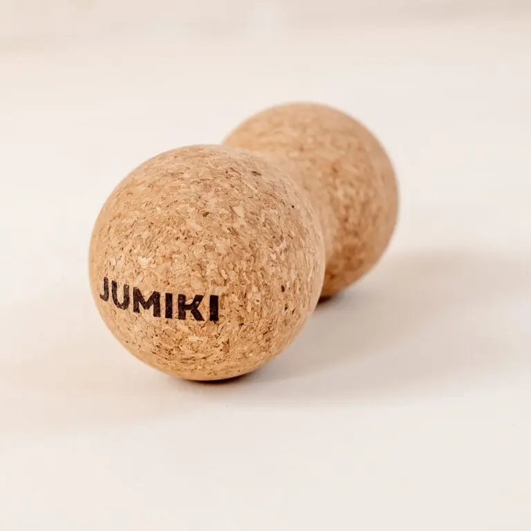 Piłka podwójna do masażu i ćwiczeń korkowa JUMIKI M  – superprecyzyjne narzędzie do masażu mięśni przykręgosłupowych i punktowego rozluźniania napięć. Pomaga zmniejszyć ból, poprawia elastyczność i wspiera regenerację. Wykonana z naturalnego korka o właściwościach antybakteryjnych i antystatycznych.