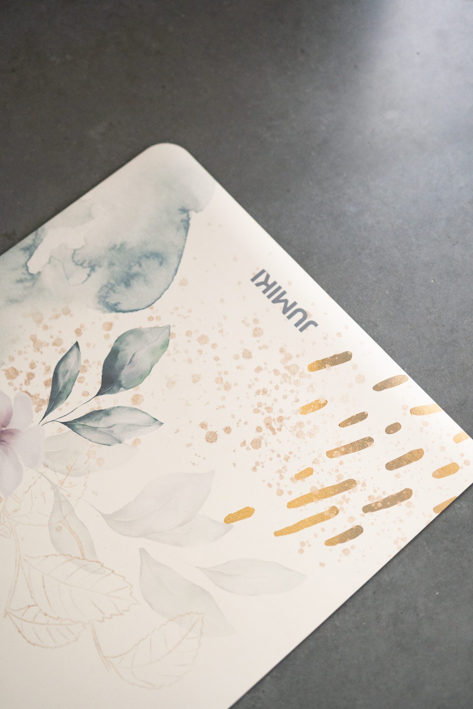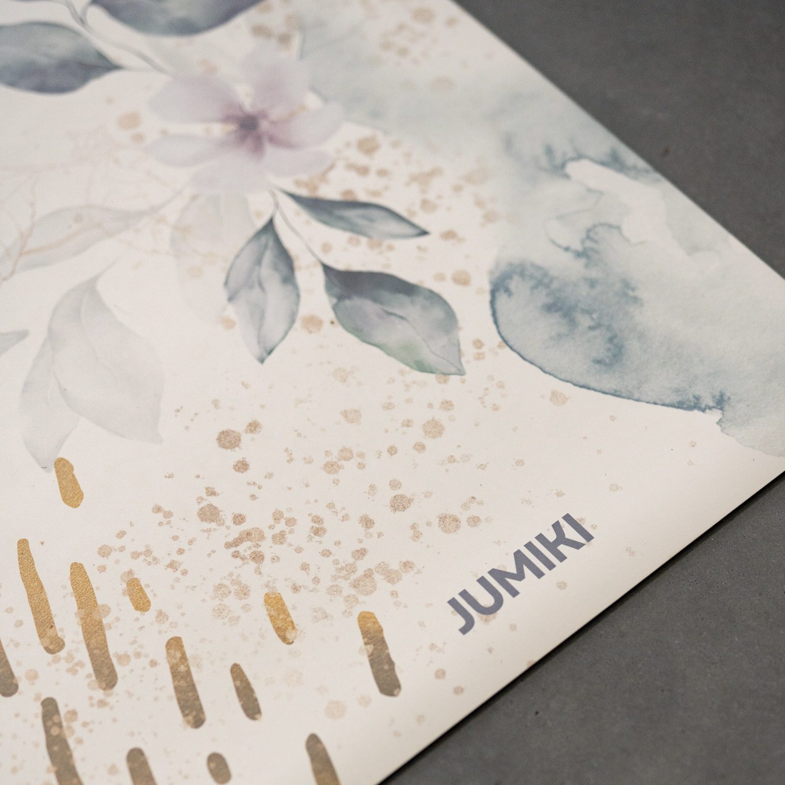 • Design: Motyw subtelnych roślin z akcentami złota
