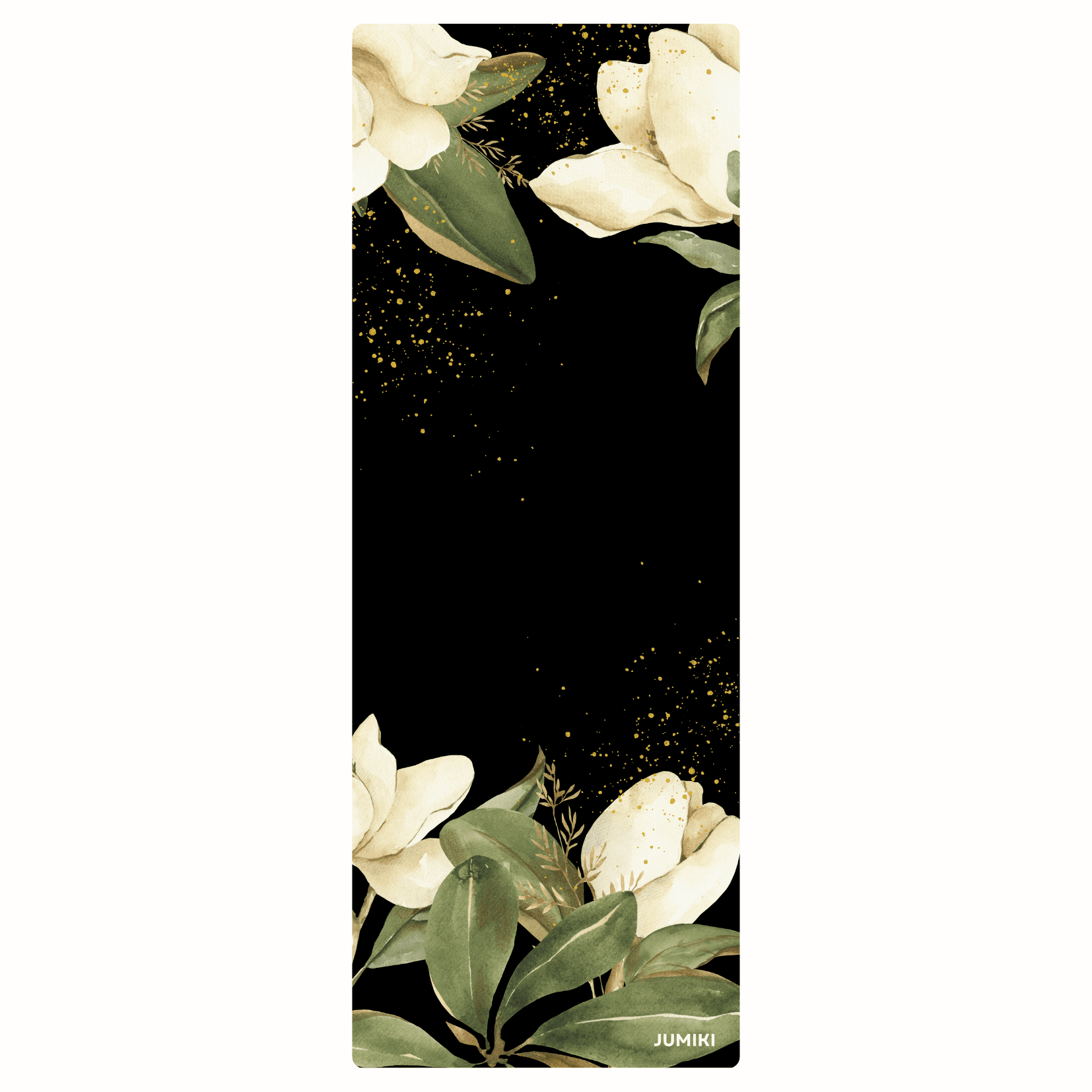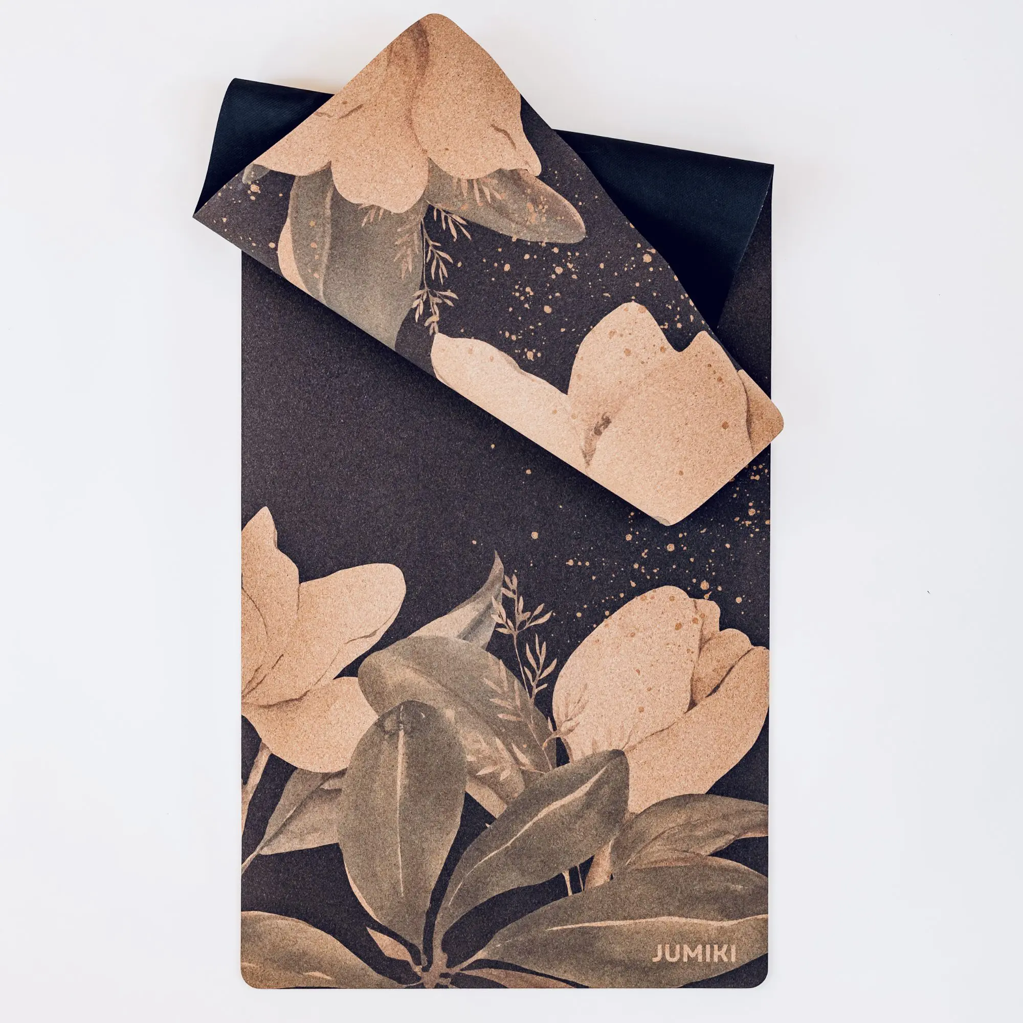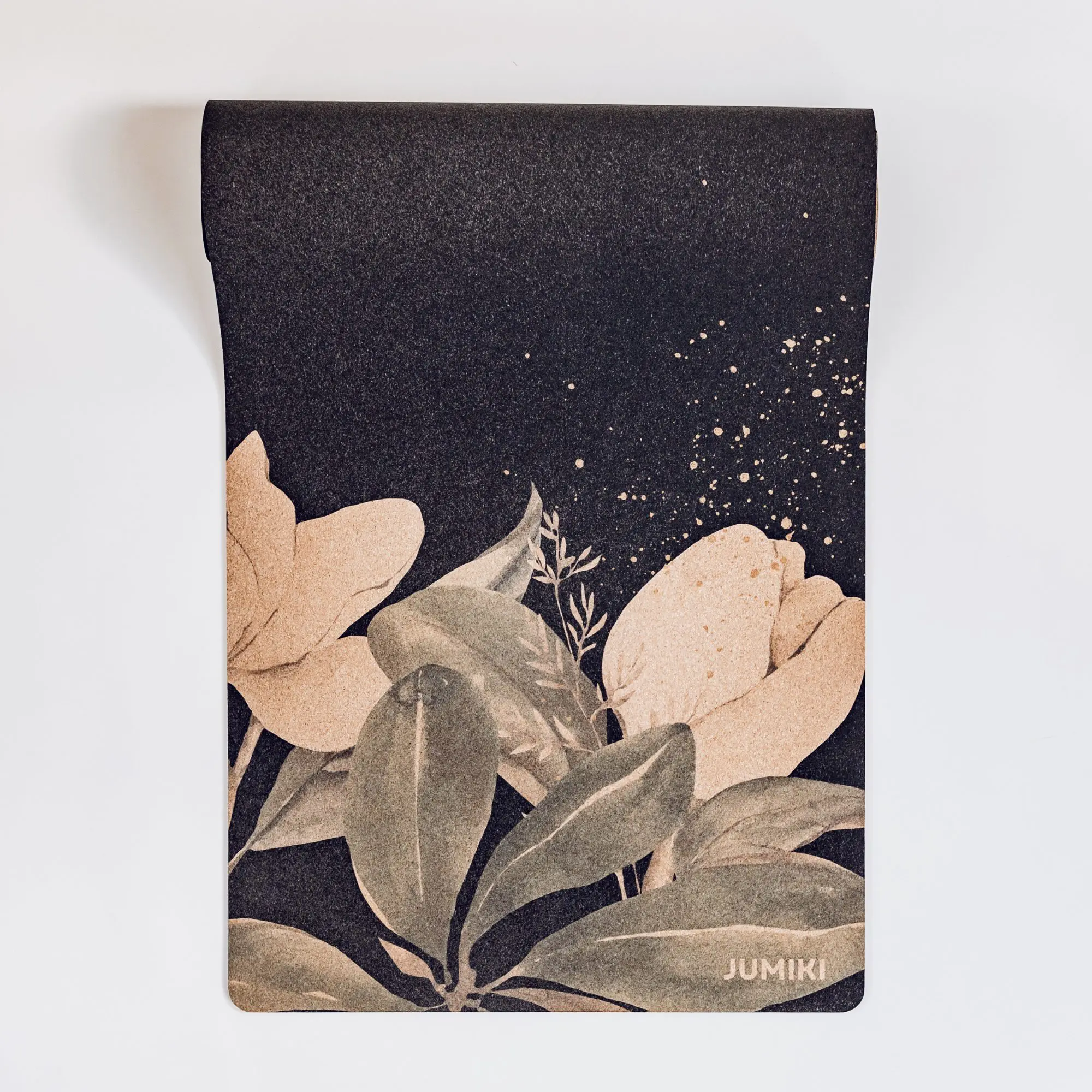 Mata do ćwiczeń JUMIKI W ROZKWICIE L to połączenie naturalnych materiałów, wygody i wyrafinowanego designu. Czarna, matowa powierzchnia ozdobiona kremowymi kwiatami magnolii i zielenią liści wprowadza spokój, piękno i harmonię do każdej praktyki. To mata, która otula Cię naturą i tworzy wyjątkową przestrzeń do ruchu.
