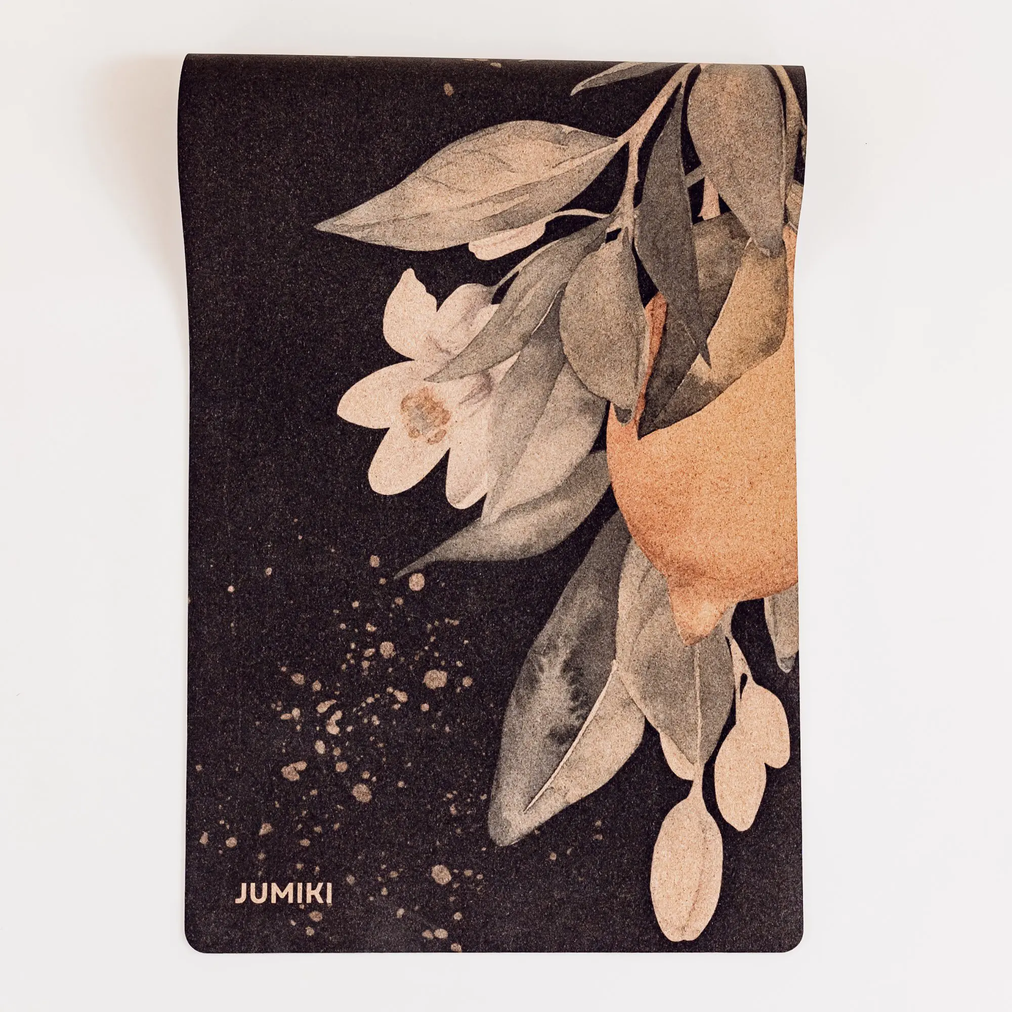 Mata do ćwiczeń JUMIKI Z CYTRYNAMI L to połączenie naturalnych materiałów, wygody i eleganckiego designu. Czarna, matowa powierzchnia z akwarelowym wzorem cytryn i liści dodaje energii i subtelnej radości, tworząc wyjątkową przestrzeń do praktyki. To mata, która wnosi lekkość i słońce nawet do najbardziej wymagającego treningu.