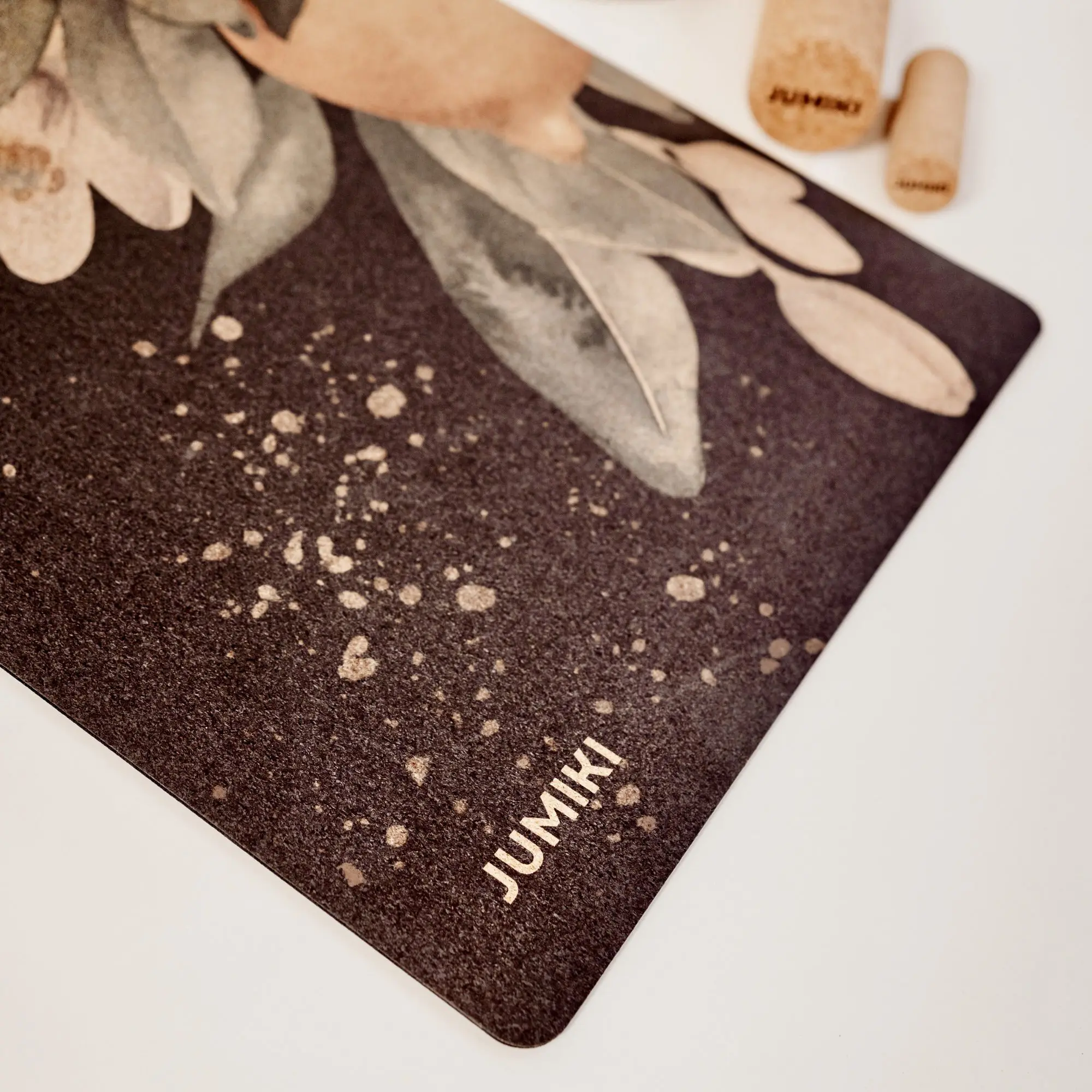• Produkt wykonany jest z naturalnych materiałów, dlatego drobne niedoskonałości w druku bądź strukturze maty są normą i wynikają ze specyfiki korka.