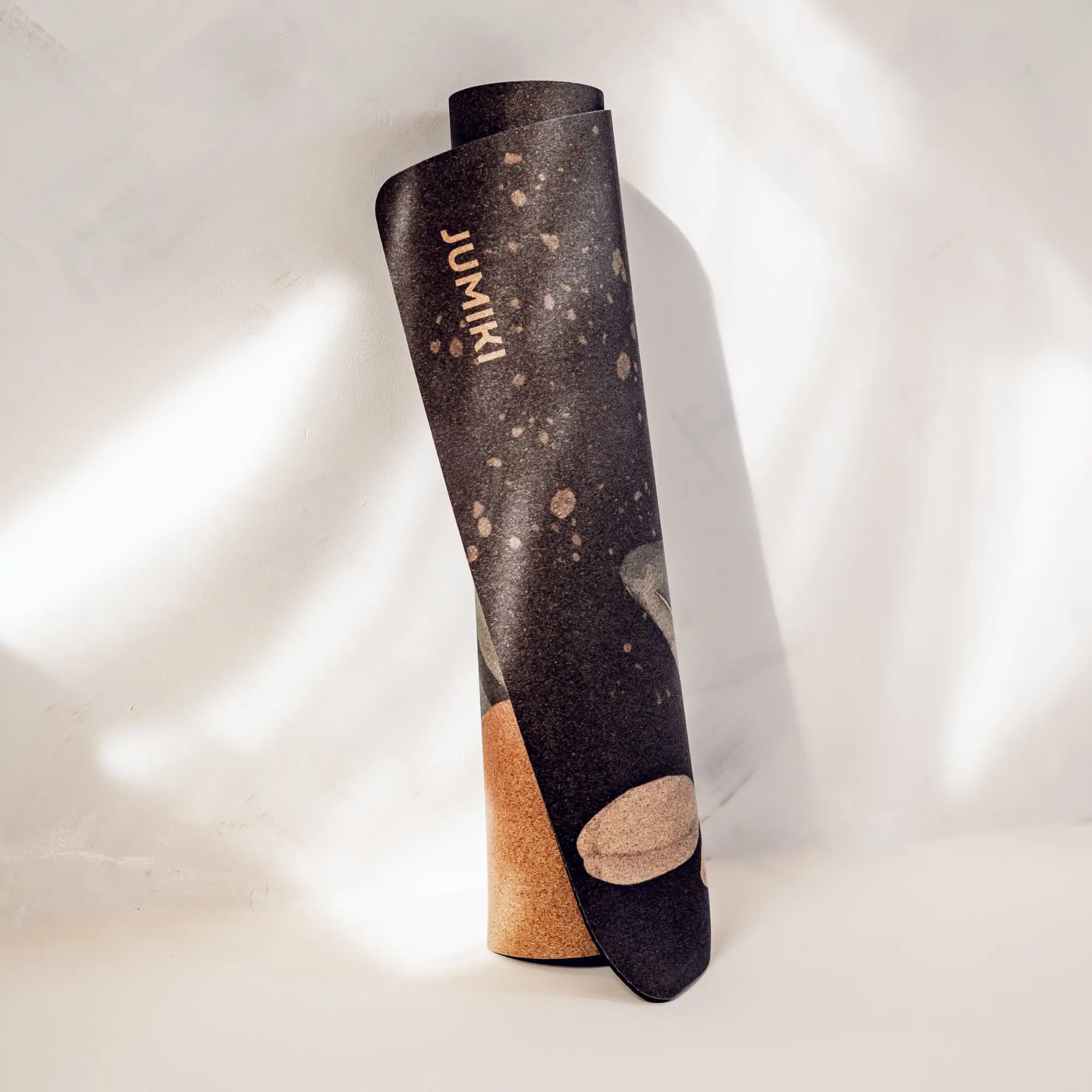 Wierzchnia warstwa maty wykonana z naturalnego portugalskiego korka jest odporna na wilgoć i pot, co pomaga utrzymać higienę podczas użytkowania. Korek charakteryzuje się naturalnymi właściwościami antypoślizgowymi, co sprawia, że można ćwiczyć z pełnym poczuciem bezpieczeństwa, bez ryzyka poślizgnięcia.