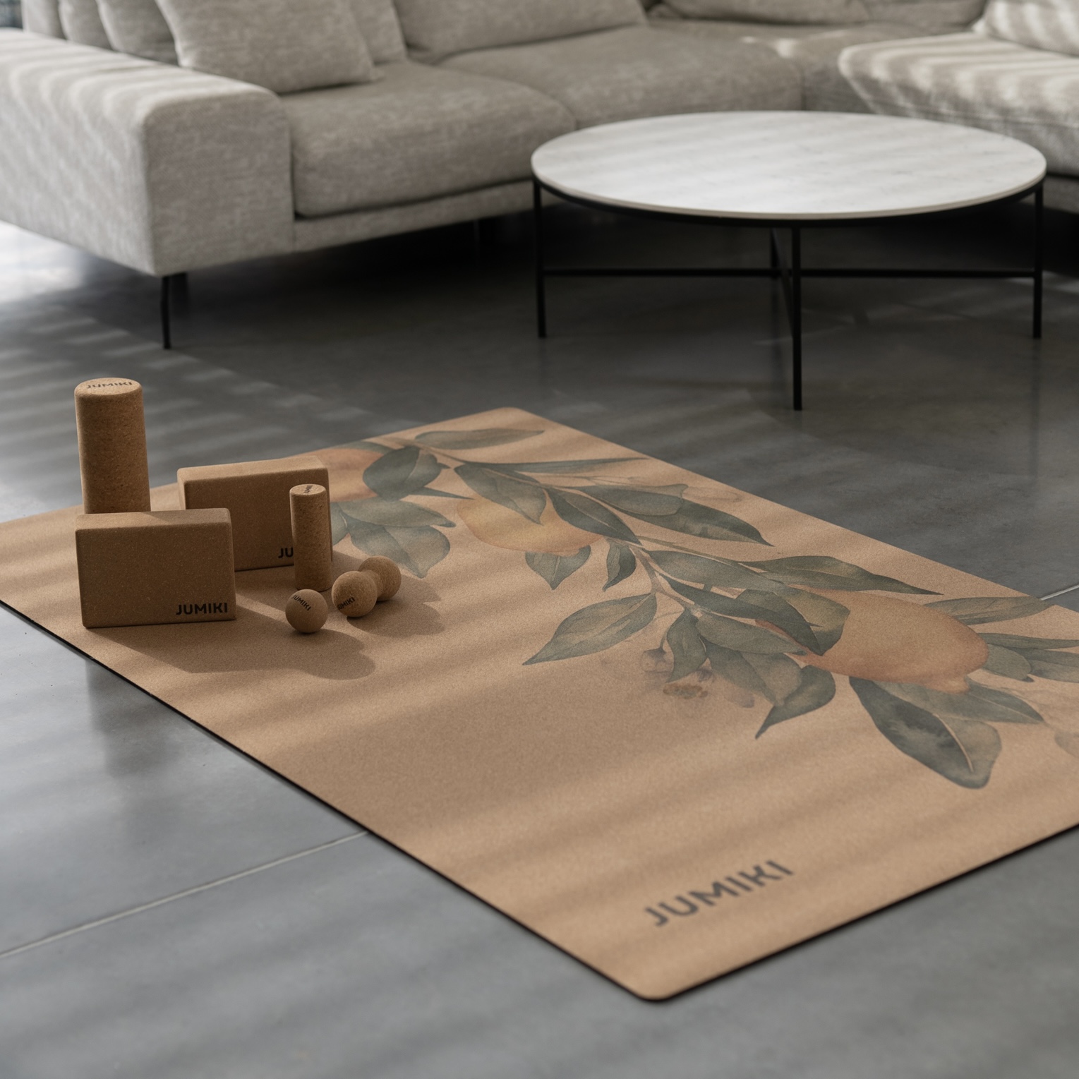 JUMIKI / Sklep / Maty do ćwiczeń / Mata do ćwiczeń korkowa JUMIKI Z CYTRYNAMI XXL