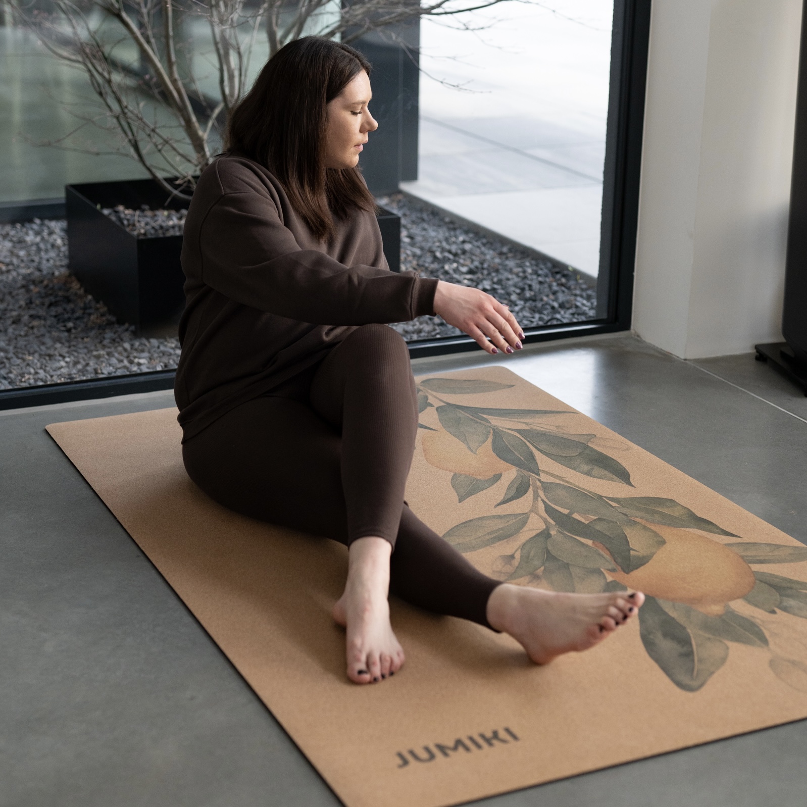 Mata do ćwiczeń korkowa JUMIKI Z CYTRYNAMI XXL