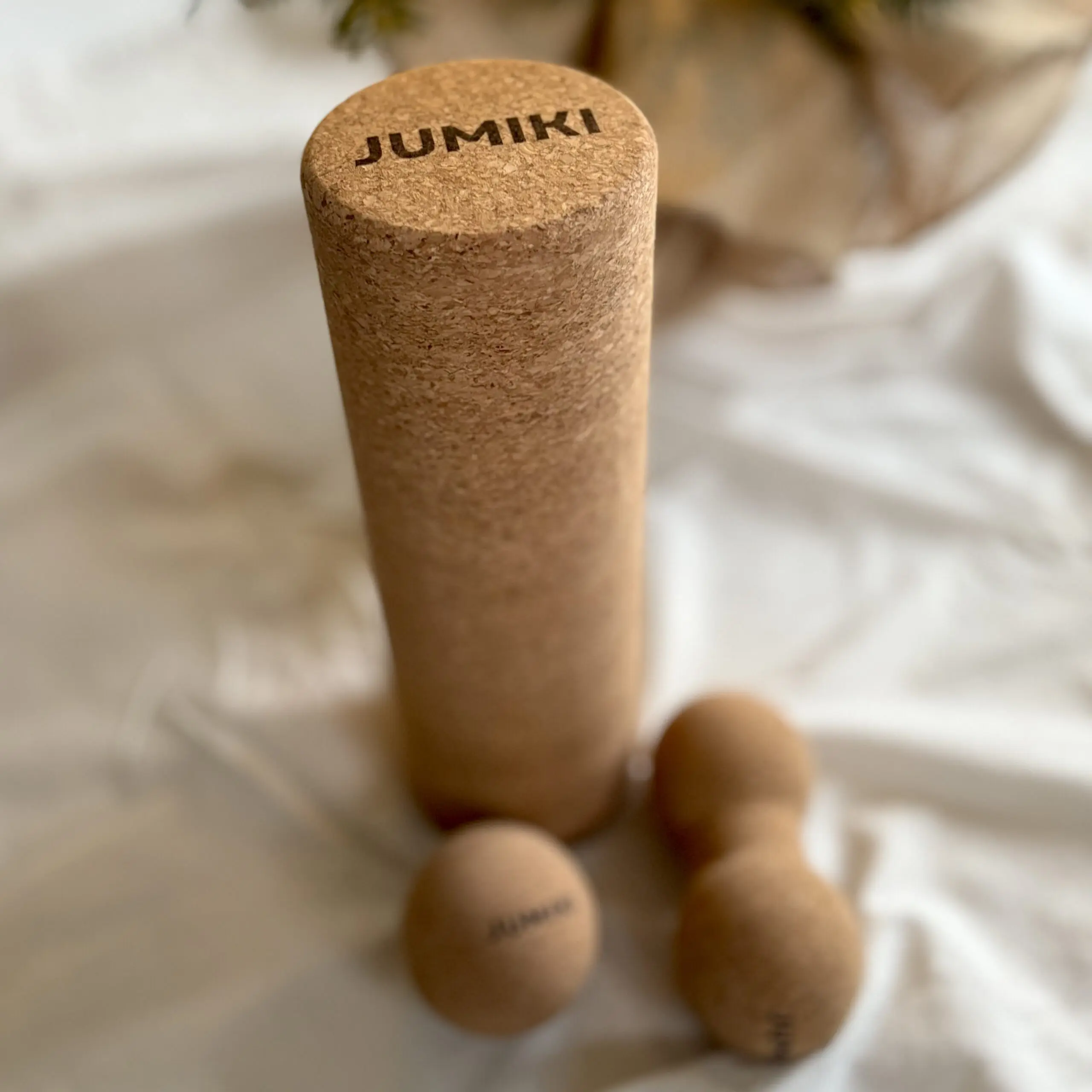 Zestaw do ćwiczeń i masażu JUMIKI MOBILITY – roller M 10×30 cm, piłka S 6 cm i podwójna piłka M