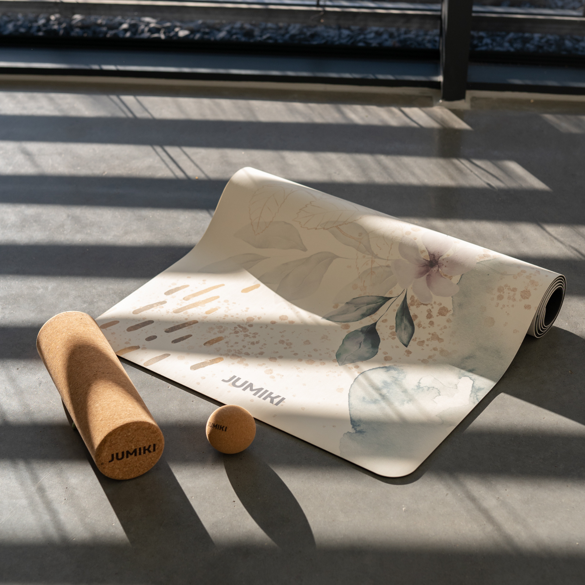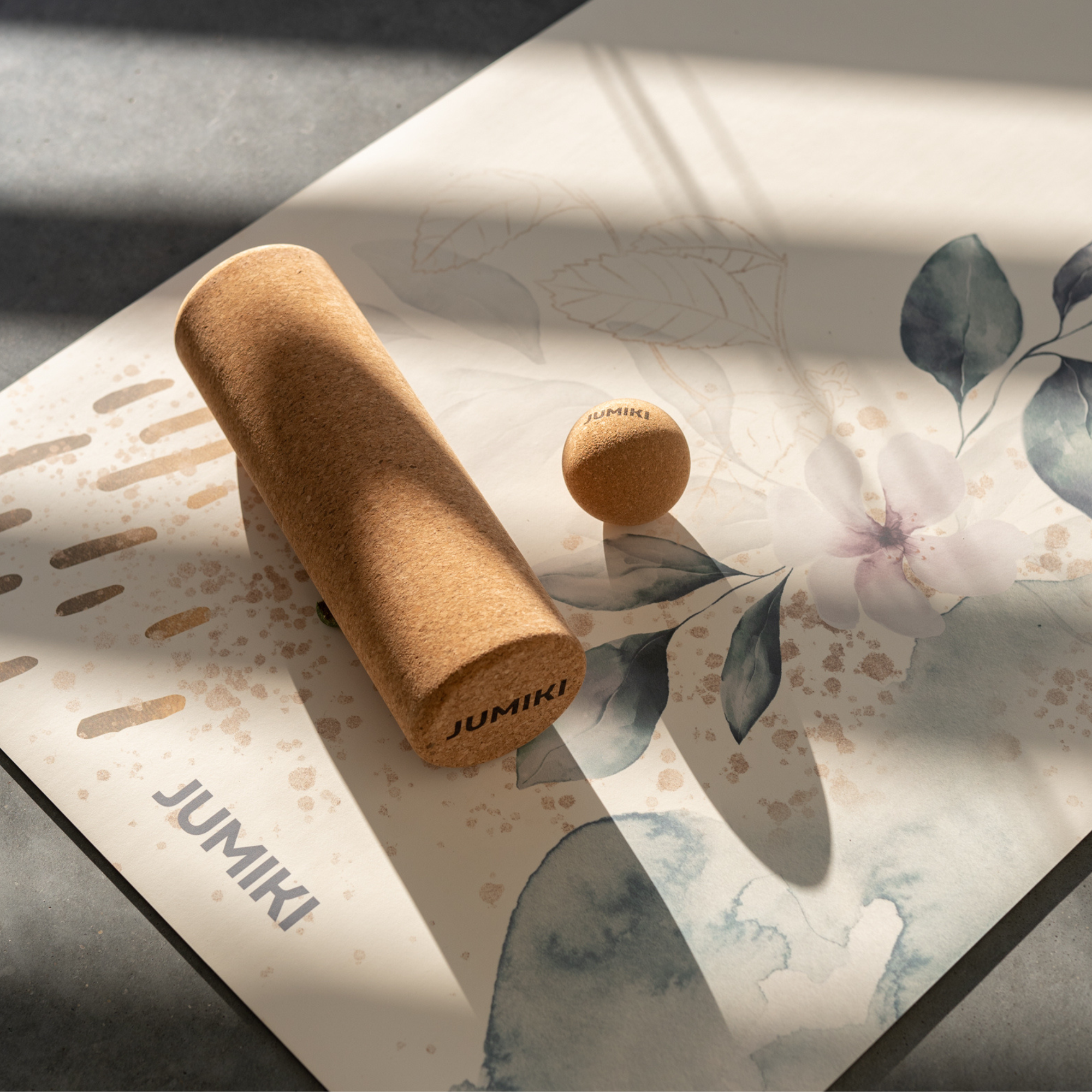 Mata Złote Liście daje stabilność i pewność ruchu, dzięki czemu możesz skupić się na technice, oddechu i płynności przejść. Roller pomaga rozluźnić plecy, uda, łydki i pośladki, szczególnie po treningu lub długim siedzeniu. Piłka korkowa pozwala dotrzeć do mniejszych, bardziej napiętych obszarów i szybko przynieść ulgę tam, gdzie ciało najbardziej tego potrzebuje. To zestaw, który naturalnie łączy trening, mobilizację i regenerację w jednej, spójnej praktyce.
